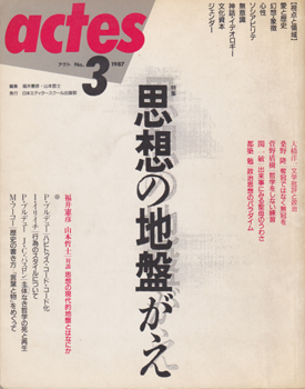 1986年から、わたしは出版生産拠点を、新評論から日本エディタースクール出版部(さらに新曜社と三交社)へとシフトした。理論誌の刊行をどうしても実行したかったからだ。福井憲彦氏と共編で雑誌『actes』(1986.5〜)を刊行し始める。社会科学そのものの理論地盤を変える知的生産活動をどうしてもやりぬかねばと、切実に感じていたからだ。ブルデューとフーコーを軸にして、思想基盤を変えるという作業を課していく。ブルデュー・ライブラリーの企画は、そのまま新評論へ残し、わたしは去った。そして、わたし自身の知的生産は、フーコーとブルデューをもって、超領域専門研究へとすすみ、文化科学考問い研究院を設立して、企業との協働ワークを研究プロジェクト型ですすめていくものへと飛躍する。