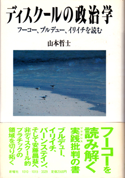 フーコー「真理と権力」、ブルデュー「慣習行為と権力」、イリイチ「制度と権力」、バーンステイン・安藤昌益「知・権力とディスクール」、そして「ことば・性・ディスクール」と権力、権力論の転移をはかった。そして、「非ディスクール的プラチック」の領域を開く問題設定をなした。言説が権力関係構造にくみこまれて、日々の実際行為を規制している閾を明示した。これが、わたしの、国家や商品市場経済を支配的にしている社会科学そのものへの批判理論である。教育は、その範例でしかない。また、性・セクシャリテ、言語の権力関係への考察を開く。この書を、森反章夫氏が、社会科学へのF・B・Iだなと的確に称したものだ。CIAも書かなくてはならんね、とこたえたものだ(カッシーラー、イリイチ・レーニン、そしてアルチュセールだ)。新しい社会科学理論への基盤を設定したものである。表紙デザインは、河北秀也・明星秀隆、イラスト鈴木敏夫氏がしてくれた。